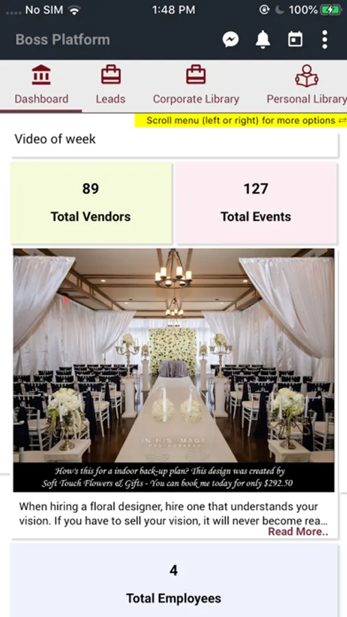 Revolutionizing the wedding industry, one venue at a time! Introducing a customized operating system for wedding venues, BOSS Includes, but is not limited to: