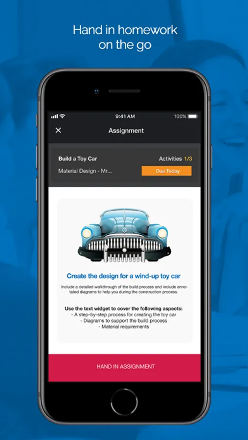 • Manage your child’s homework schedule and deadlines using the handy calendar view