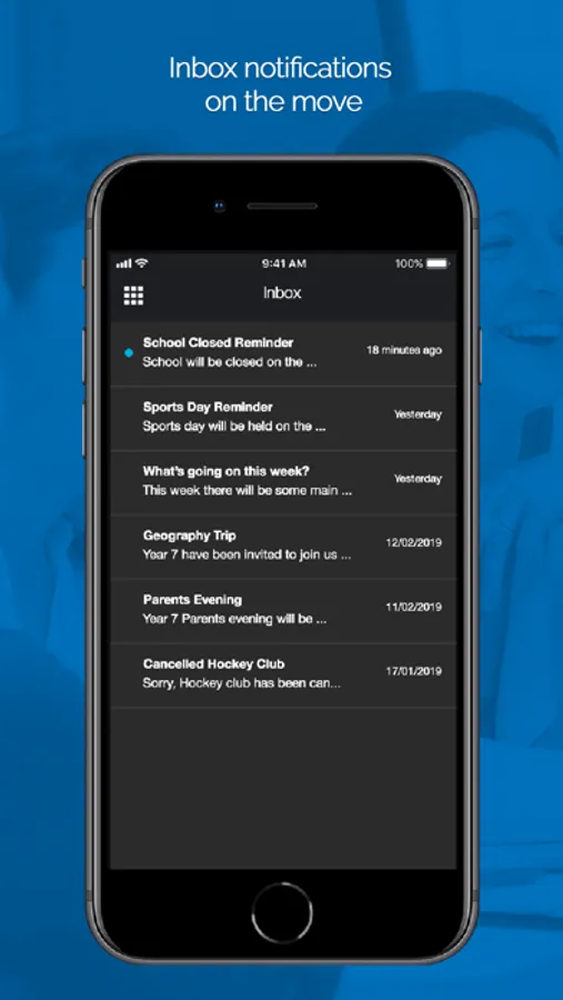 • Receive messages from your child’s school and teachers in the app’s inbox