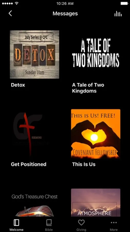 This app will allow you to get connected with life at Covenant Fellowship Church. With this app you can: