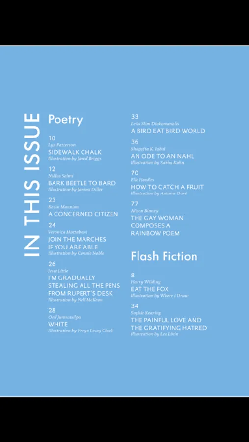Popshot is an illustrated literary magazine that publishes short stories, flash fiction, and poetry from the literary new blood.
