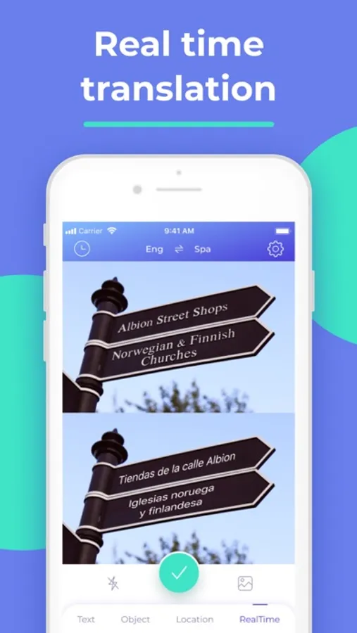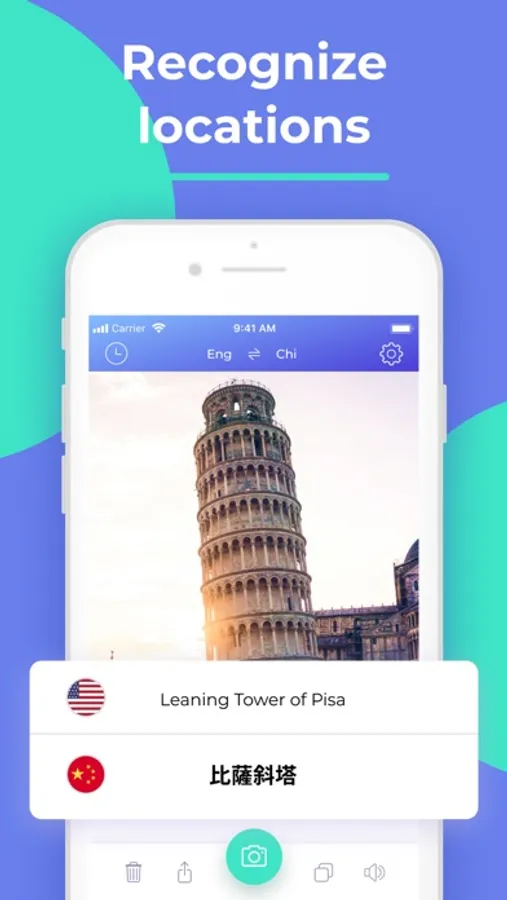 Use your camera to scan & translate texts or documents. Detect objects and recognize locations with one touch. Take a photo and translate anything!