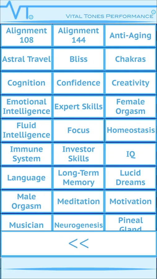 Our therapies encompass an extensive list of areas, tailored to meet your specific needs. Whether you seek to enhance your cognitive abilities, improve focus and motivation, unlock creativity, boost emotional intelligence, achieve serenity, or develop expert skills in various domains, Vital Tones has a therapy designed just for you. From aligning your energy centers and chakras to stimulating memory and promoting self-awareness, our app covers a diverse range of needs.