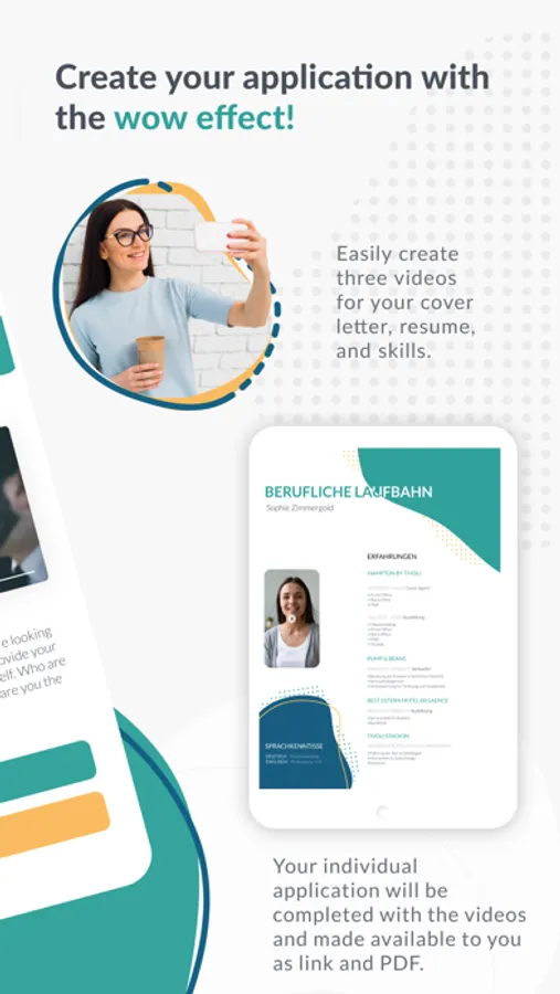 The integrated product Close-up is a video-based CV that you can easily record with your smartphone and integrate into your application. It helps you stand out from the crowd of applicants. Personality characteristics are at least as important for personnel decisions as the professional qualification itself. With a close-up video, you can authentically present yourself, your skills and your motivation.