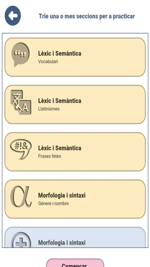 - Realizar un test sin fin con las preguntas de cada una de les secciones en que se agrupan.