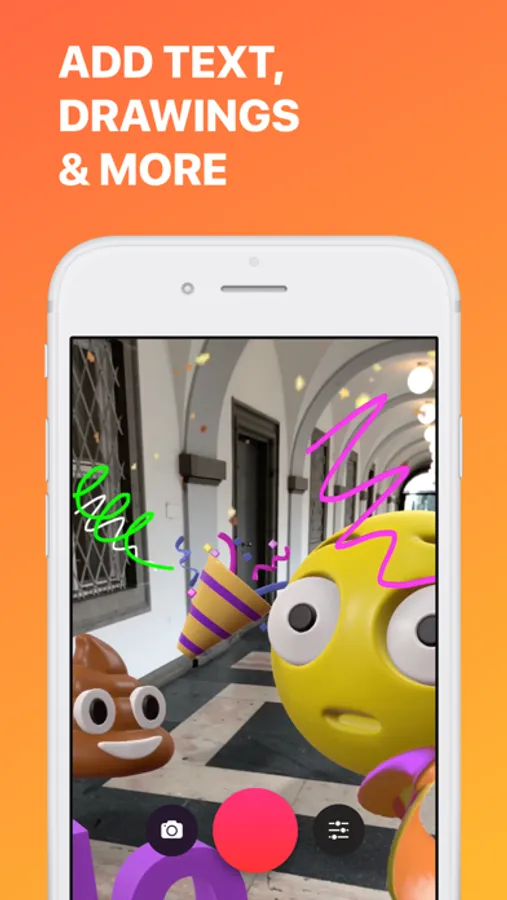 Add fun 3D emoji, text, GIFs and more to your world and take photos & videos to share with friends.