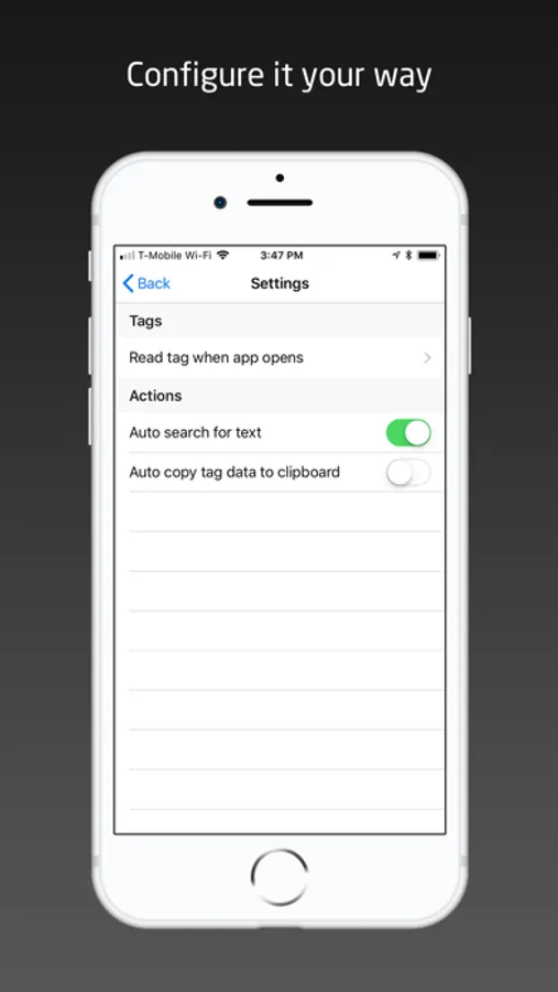 • NFC tags must be NDEF encoded to be read by an iOS device; blank (unencoded) NFC tags will not work (see help for details)