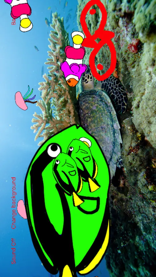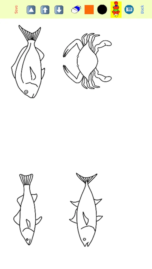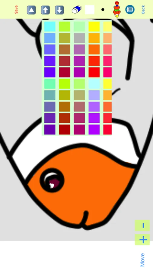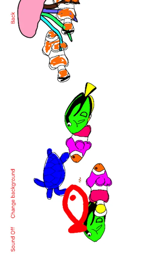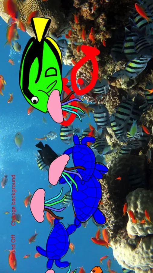 In the 'Color the fish' mode, choose a fish by tapping fish button, color it with more than 150 colors, and save.(If you choose empty place, you can draw a fish from the first.)