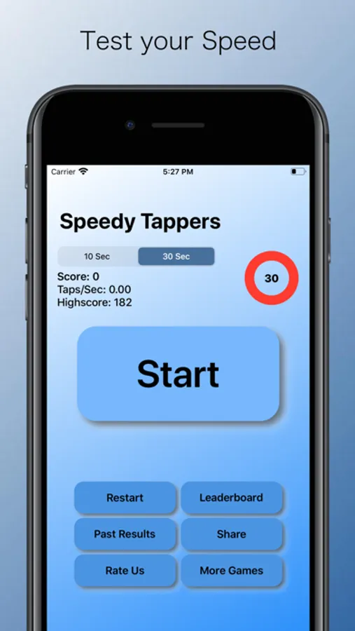 TAP! TAP! TAP! CLICK! CLICK! CLICK! In Speedy Tappers, you'll get 10 or 30 seconds to show your speed by tapping as fast as you can. Compare your scores with your friends and others around the globe through our Game Center leaderboard to see if you can be #1. Let's see if you can get 500+ taps in 30 seconds. Many will try, but only a few succeed.