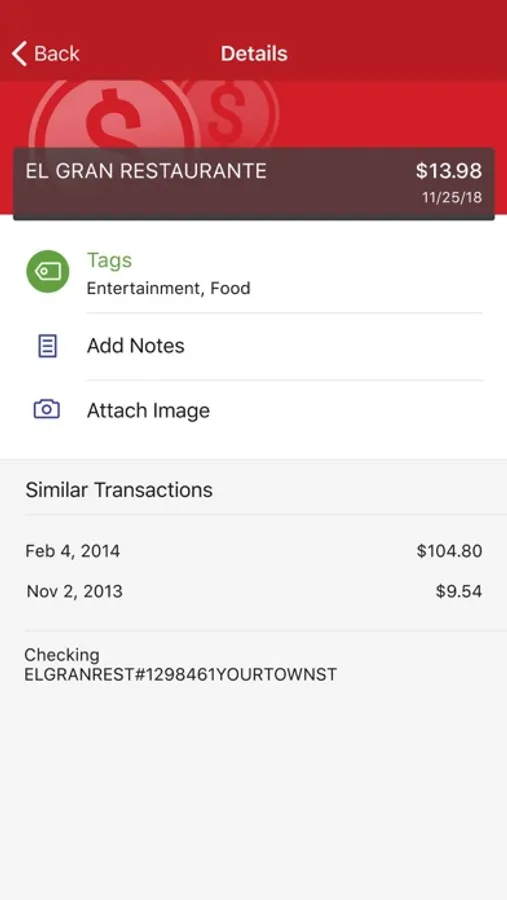 Add Tags, Notes, Images & Geo-Information: By enhancing transactions with custom tags, notes or photos of a receipt or check, you have the ability to stay organized and find exactly what you’re looking for when searching through your finances.
