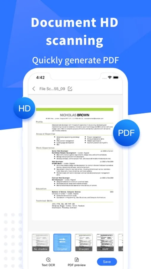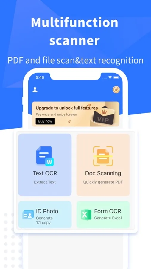 PDF Scanner can turn your device into a powerful portable scanner to help you improve the efficiency of work and daily life. Download this scanner app for free to scan files (OCR) or IDs, edit, translate, save, and copy the recognized content, and share them in PDF, JPG, Word or TXT formats.