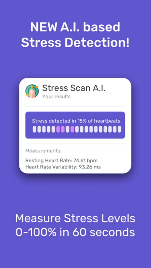 Healthzilla can now read your resting heart-rate and variability using your phone's camera, for your daily stress score! It takes just 60 seconds, and will give you the full stress score analysis as with a wearable device. Do it every morning before getting out of bed for best results.