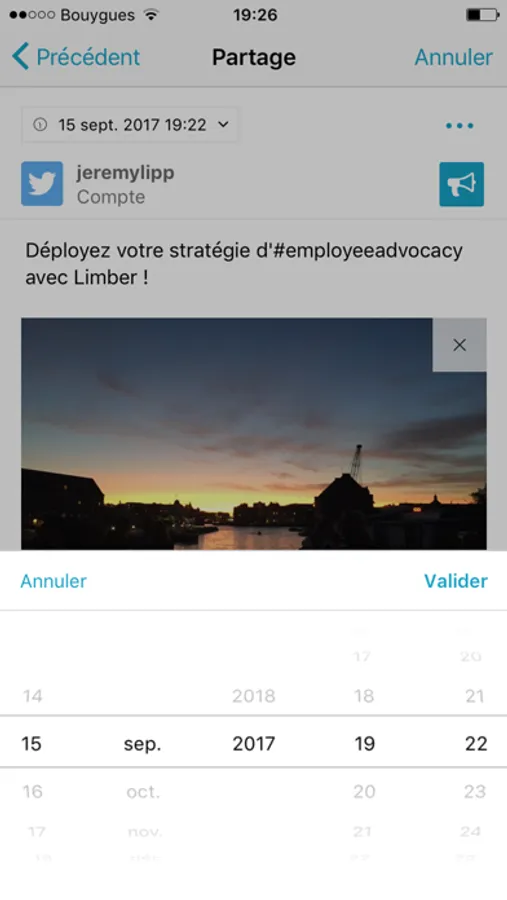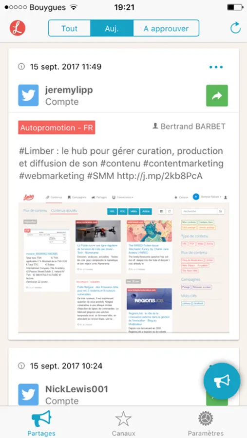 Limber permet également de gérer la diffusion de contenu via les comptes sociaux des personnels dans une logique d'Employee Advocacy" ou de Social Selling".