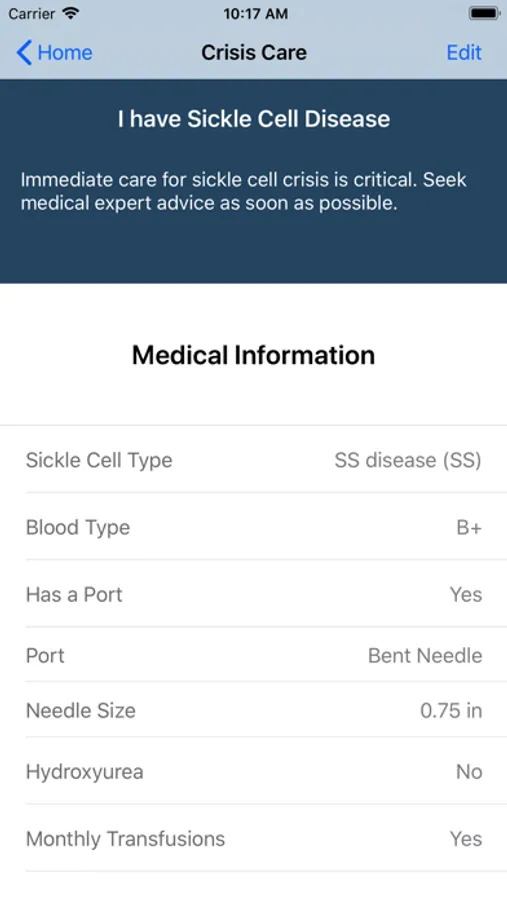 App for sickle cell patients currently enrolled in the Voice Crisis Alert Study.
