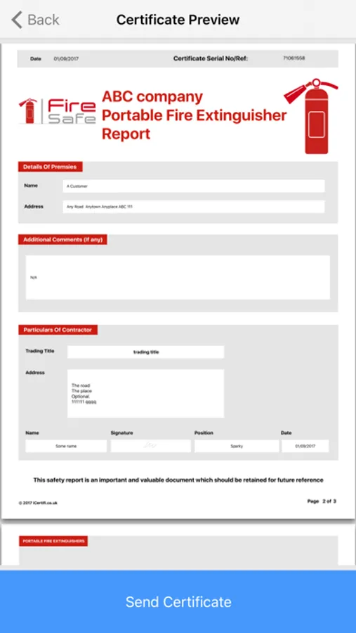 Send and save unlimited fire extinguisher reports: