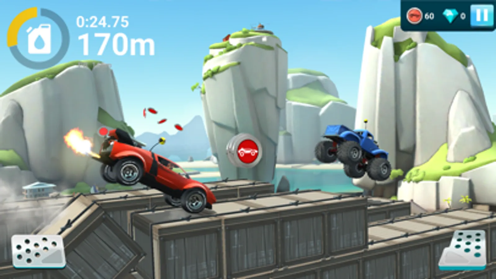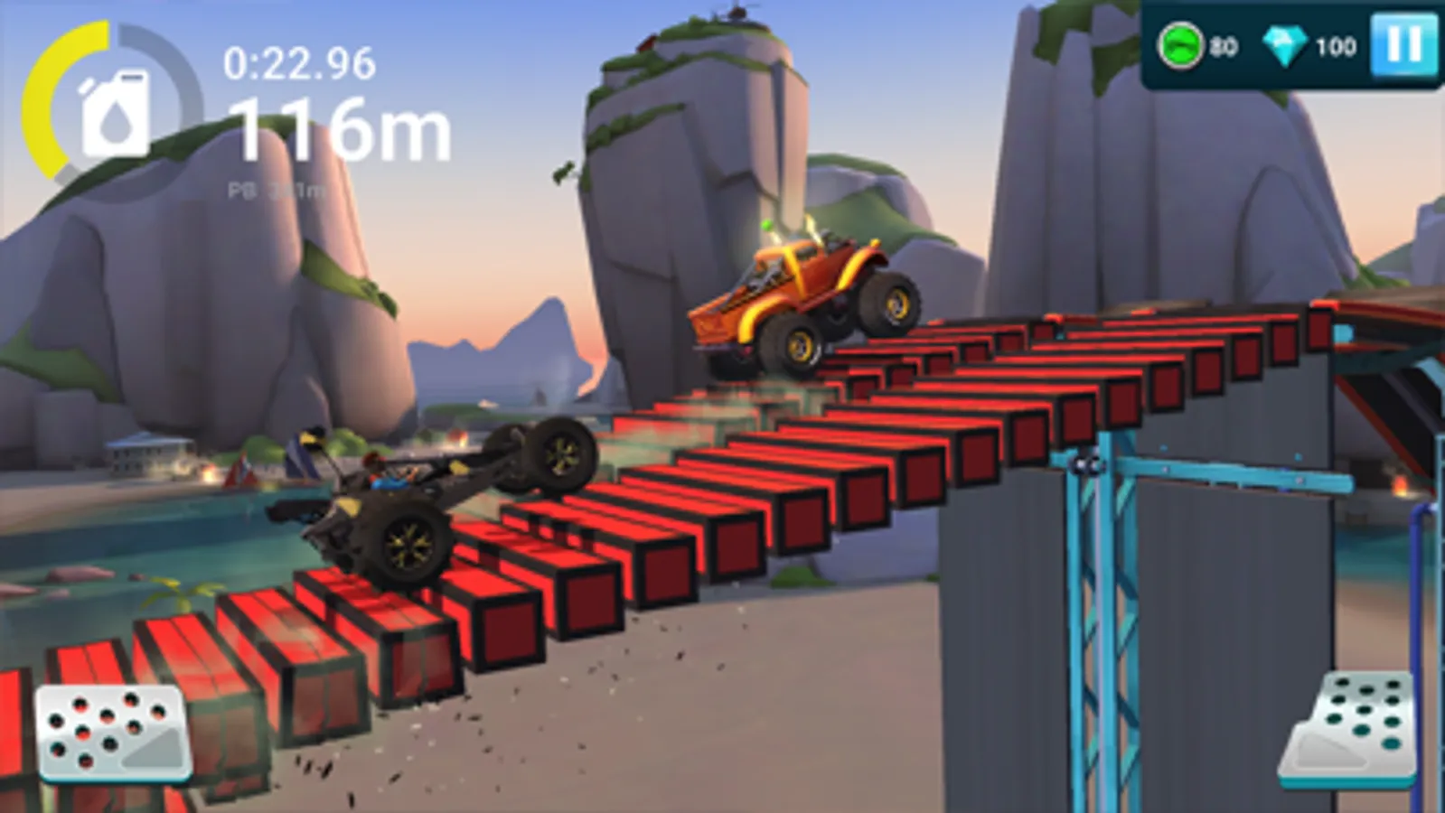 Get airborne with spectacular jumps and loops that test you as a driver. Control your gas pedal to tilt forward or hit the brakes to tilt backwards, it’s up to you to nail your start before launching your truck over huge jumps. Time your throttle action to perfection to stop things getting seriously out-of-control.