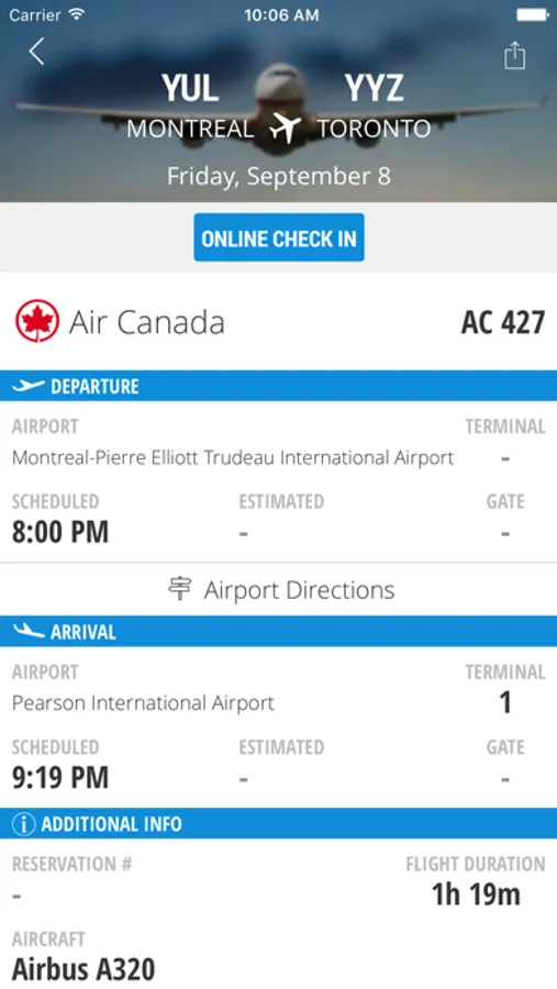 • Flight info: You can keep your flight schedule in the palm of your hand, and perform online check-in right in the app. You’ll even receive alerts to keep track of the latest news about your itinerary.