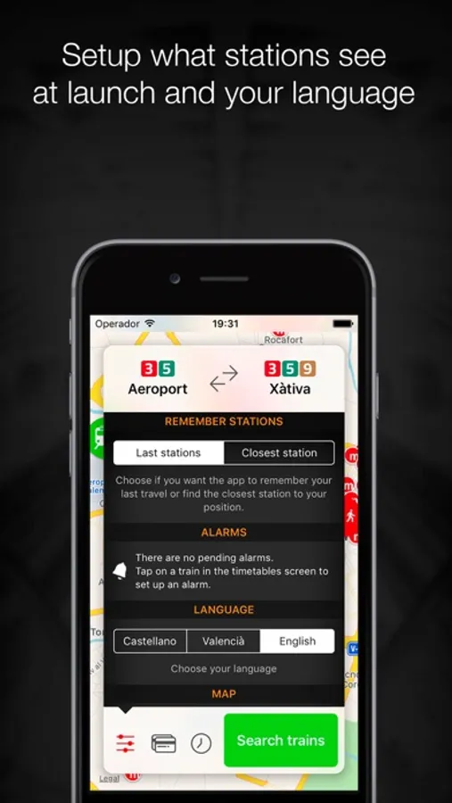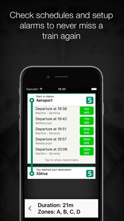 - Never again loose a train! Tap in the departure time and setup an alarm to notify you when it is near.