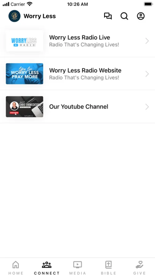 The app connects you to our live radio staton, Worry Less Radio, which features live DJ's that'll inspire and help you make it through the day! You'll also be able to contact us via the app where you can submit prayer requests and obtain several free resources that are sure to help you grow in your faith.