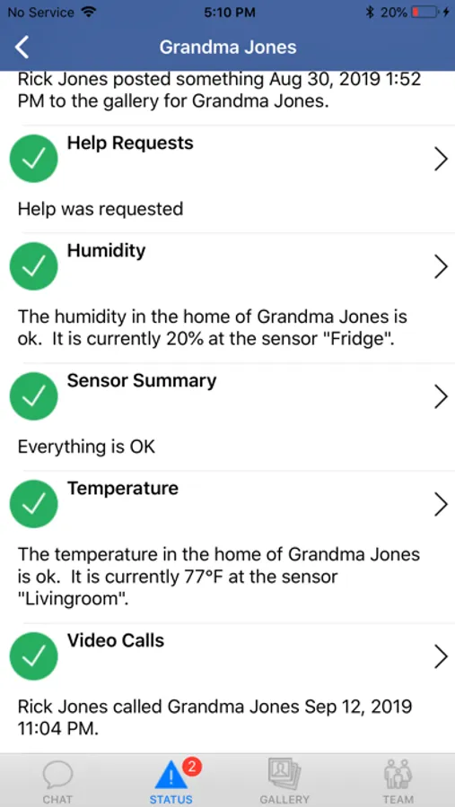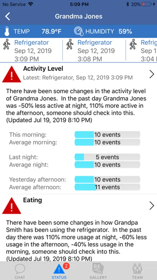 • Family can receive alerts if something is wrong, such as certain behavioral changes, sleep issues, temperature issues or potential falls (requires the optional sensors).