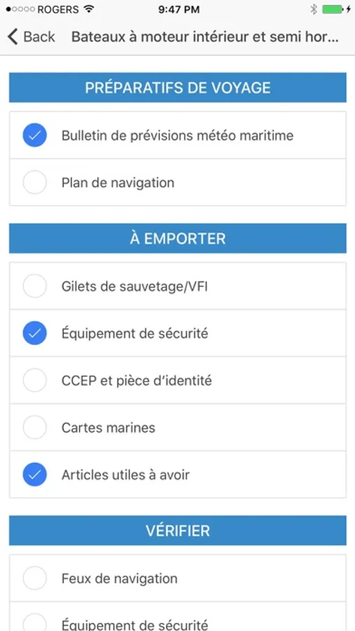 Sélectionnez un des boutons plus bas correspondant à votre bateau pour obtenir une liste de vérification.