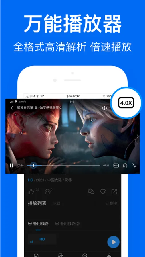 ·播放器:自定义播放器,支持最高16倍速播放、支持AirPlay、DLNA投屏播放、长按快进/快退、一键锁屏、一键静音、后台播放、小窗播放等功能。
