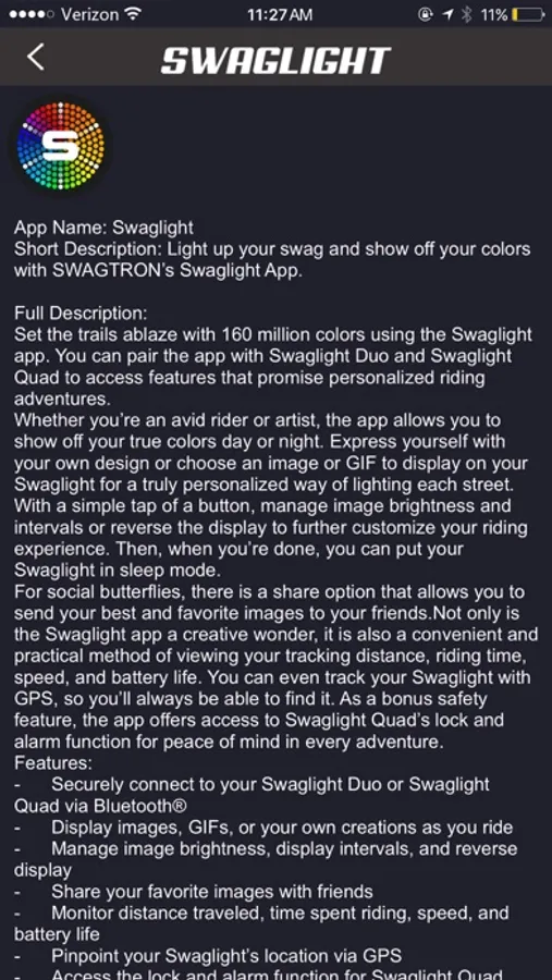 - Securely connect to your Swaglight Duo or Swaglight Quad via Bluetooth®