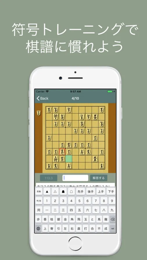 アプリをダウンロードし、 iOSの設定アプリで「一般 > キーボード > キーボード > 新しいキーボードを追加」から「将棋キーボード」を選択すると使えるようになります。