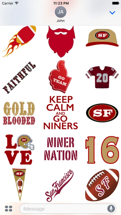 Simply tap to send San Francisco fandom in a message, adjust their size, or peel and place them on top of bubbles, other stickers, and your football photos or otherwise.