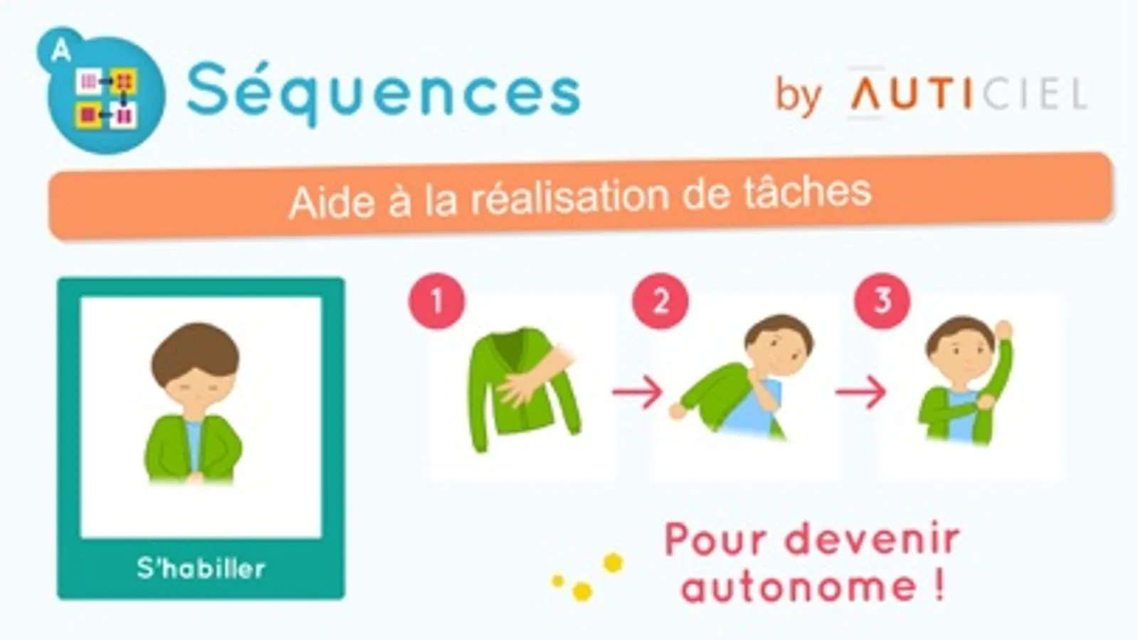 Getting dressed, tying your shoes, brushing your teeth, making an omelette, using the washing machine... certain skills are essential to a person's independence. Different people may find these skills more or less difficult to achieve. With its simple and customizable sequencing, Sequences™ can help you complete these tasks while teaching you how to perform them.