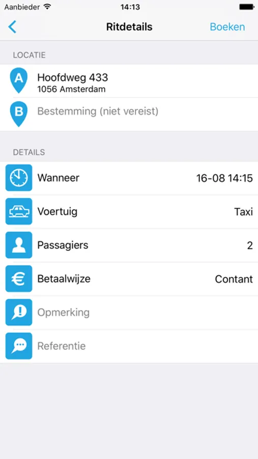 paar handelingen een rit boeken. Je klant geeft aan wanneer