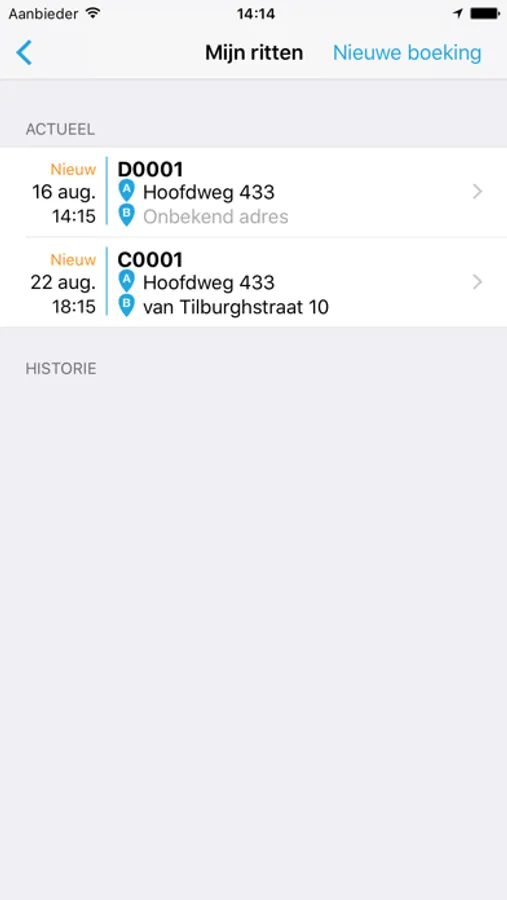 Als de rit eenmaal geboekt is, komt deze binnen in je DCS