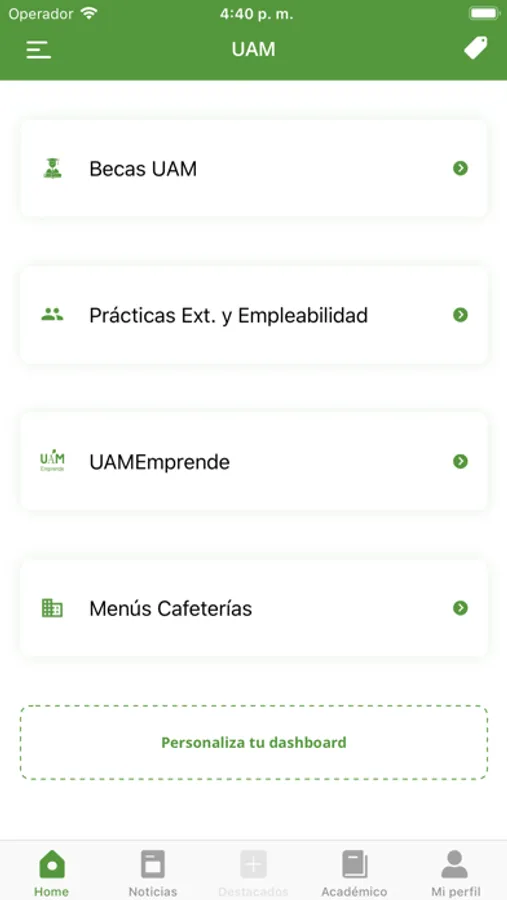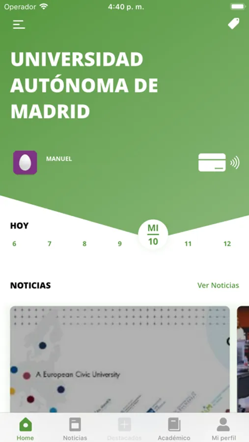 • Perfil privado: Todos tus datos personalizados según tu perfil universitario. Consulta tus asignaturas, calificaciones, etc. Y también tu tarjeta universitaria digital. ¡Siempre la llevarás contigo!