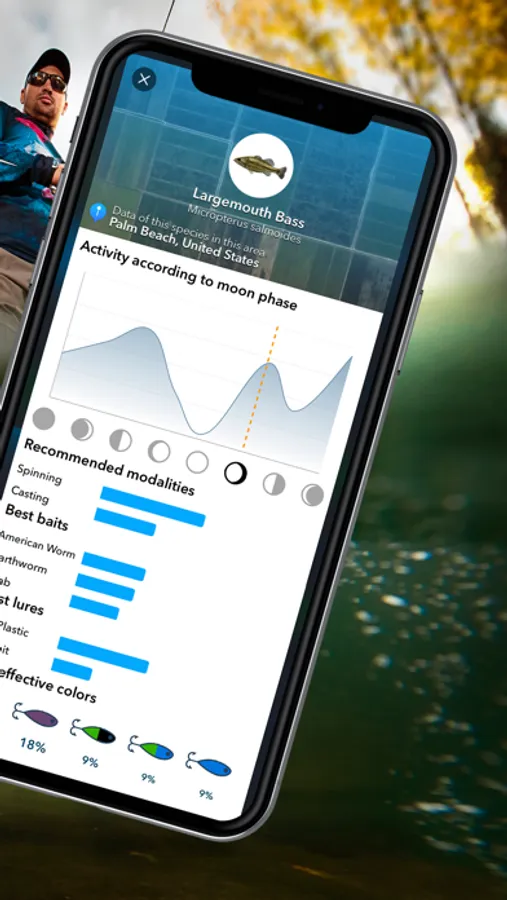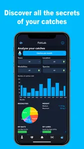 ■ ANALYZE ALL YOUR CATCHES and discover the lunar phases that work best for you, in what months of the year you fish the most, what color of lure is most effective for each species, the best water temperature, etc.