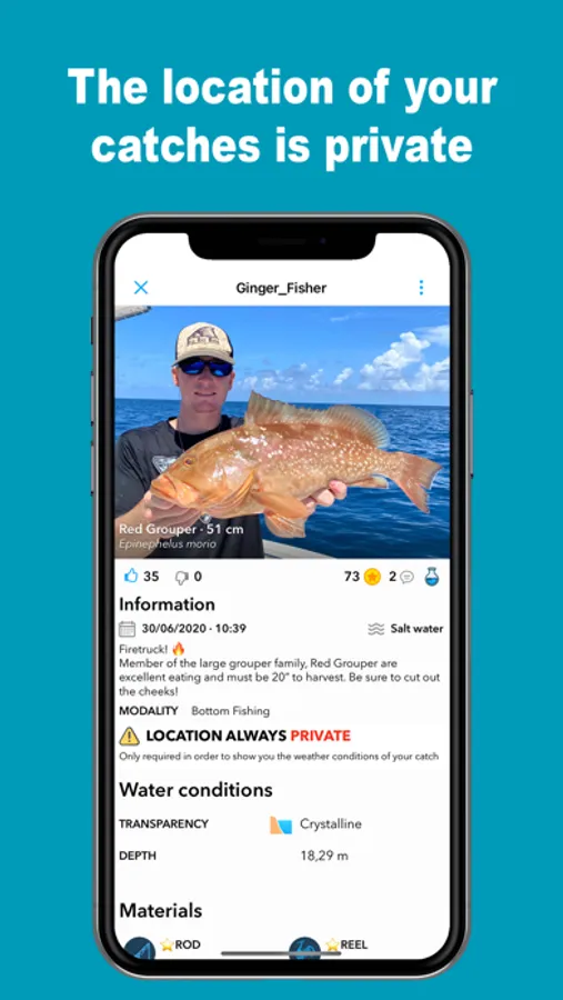¡IMPORTANT! Your catch location info is PRIVATE. No one will never know your fishing spots