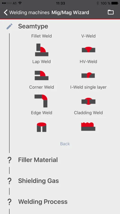 The Wizard supports the selection of the correct welding parameters. This set of welding parameters can be transmitted wirelessly to the welding device. This saves time when setting all welding parameters. The Wizard is available for MIG/MAG and TIG. The parameters can be saved online and retrieved at any time.
