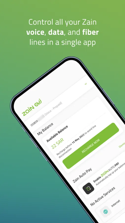 - [Zain Lines Management] Easily manage all your Zain lines in one place (Voice, Internet, Fiber). Flexible management is offered with security controls on critical functions.