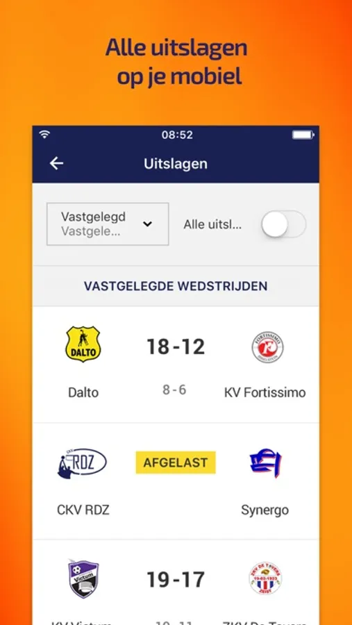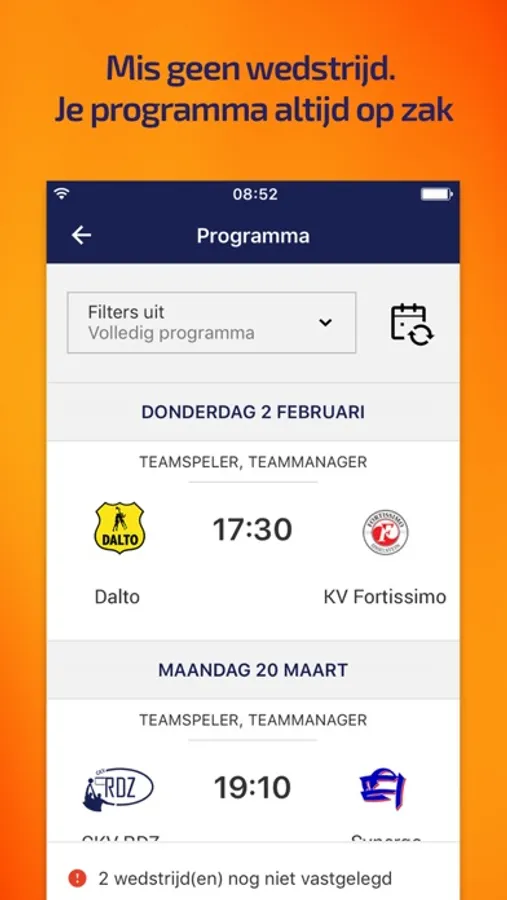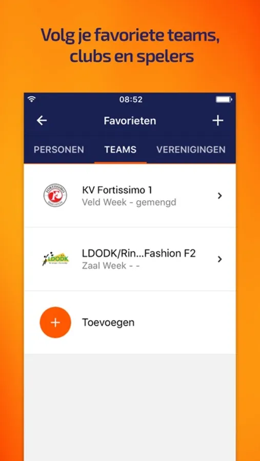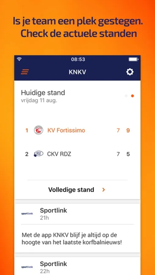 - Blijf op de hoogte van standen, uitslagen en programma’s van je eigen team