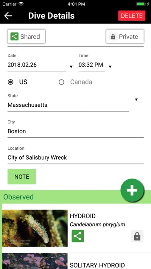 This feature is a pictorial record of the plants or animals you have seen during your dive or just a walk on the beach it is not designed to replace your traditional dive log. It is a wonderful tool for divers, citizen scientists, and lovers of nature to record their observations of marine life when and where they were found.