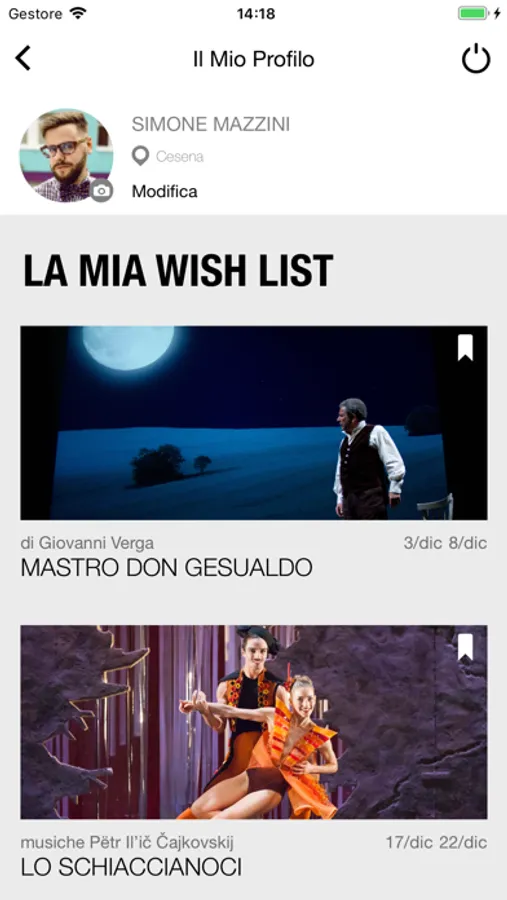 Potrai, inoltre, creare la tua WishList grazie alla quale verrai avvisato in prossimità degli eventi e degli spettacoli che ti interessano, per non perderti nulla. Regalati l'occasione di ricevere promozioni e aggiornamenti dell'ultimo minuto!