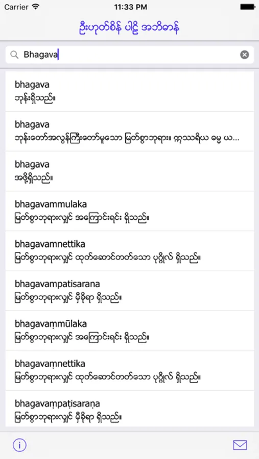 - Pali words can be looked up by Pali words in english as well as Myanmar.