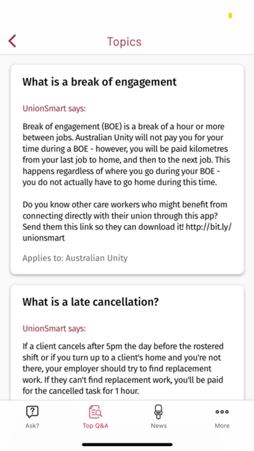 UnionSmart is filled with answers created by delegates and union officials, which get matched to you based on who you work for, whether you’re casual or permanent, where you live and which department you’re in.