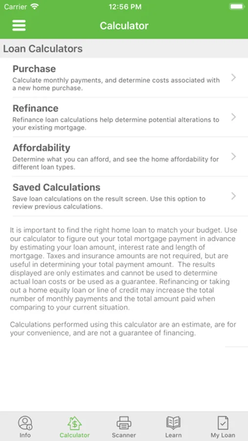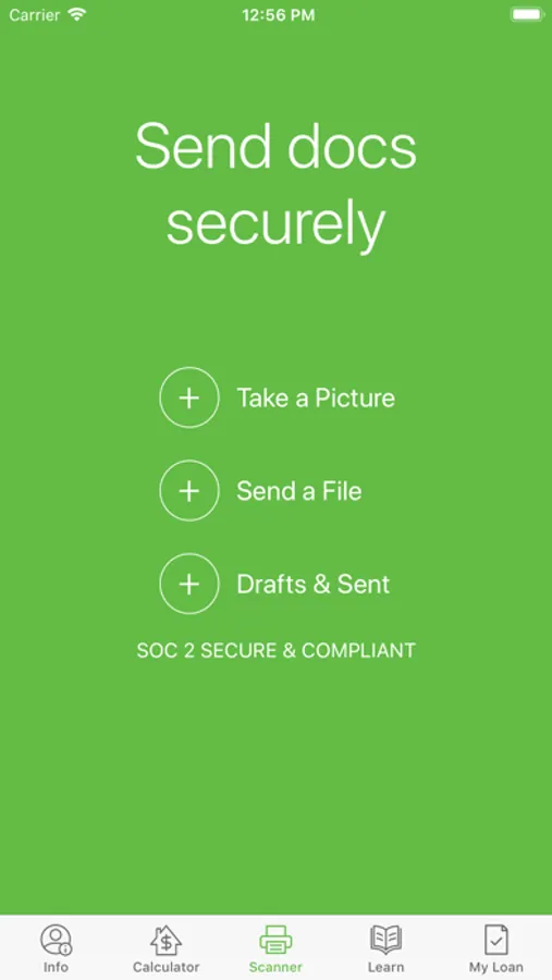 - Loan document list –Tap the camera icon to launch the scanner application to upload important loan documents such as a W-2, 30 days of paystubs, 2 months of bank statements, 2 years of federal tax returns, and driver’s license.