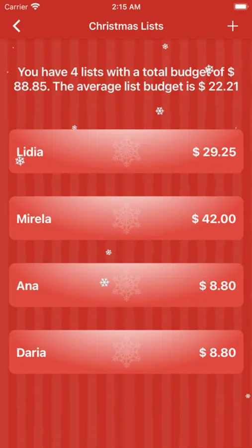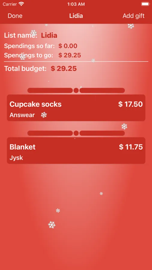 Create as many lists you want and add some gifts to them, so you don't forget anyone or anything for this Christmas.