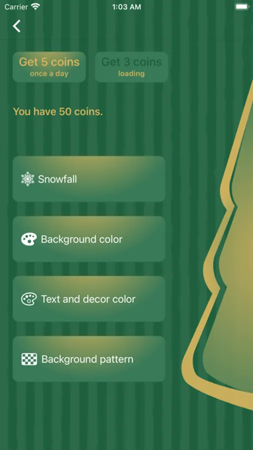 From the menu in the right you can customise the appearance of the app. You can choose from a list of many colours one for the background and another one for text and decorations, as well as a pattern for background.