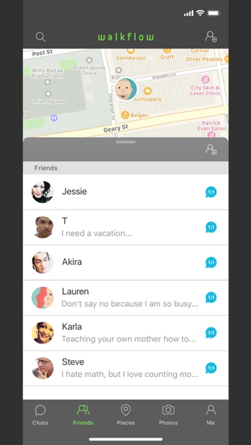 Introducing WalkFlow, a real-time location-based messenger.