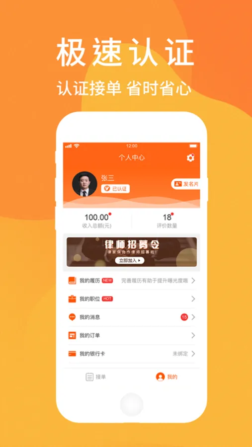 二、律师可以通过该应用获取用户在家享律师端发出的电话咨询订单