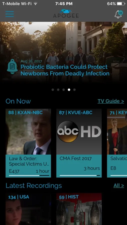 Apogee is the largest provider of on-campus residential networks and video solutions in higher education. The Apogee Stream2 service delivers a high-quality TV experience to your personal device, on campus; including local TV programming and many of the same kinds of programming that you find on pay TV services at home.