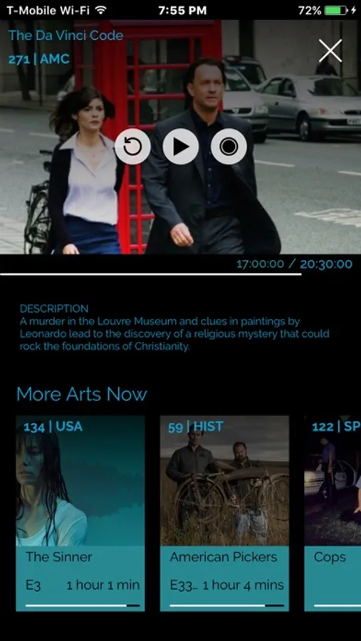 • Time-Shift features: Pause Live TV, Start Over and Catch Up