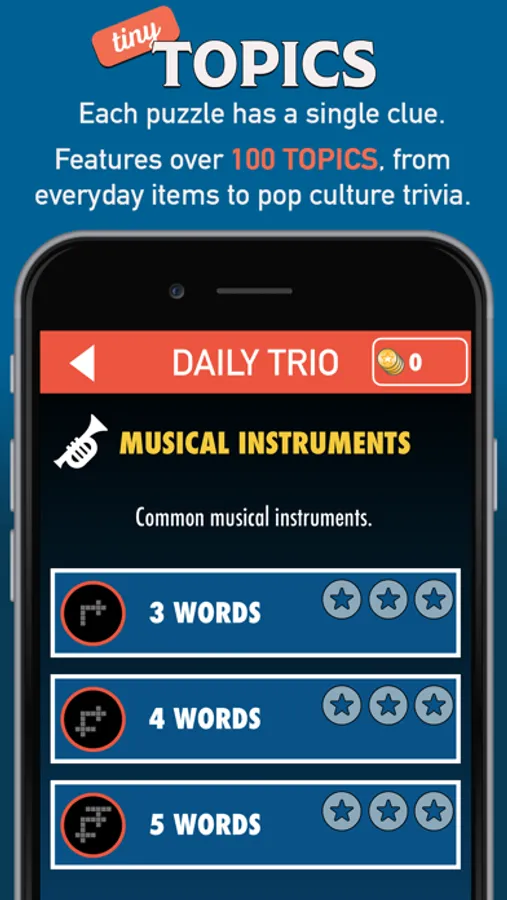 - Daily Trio - three new puzzles each day - earn extra hints and/or ad free days